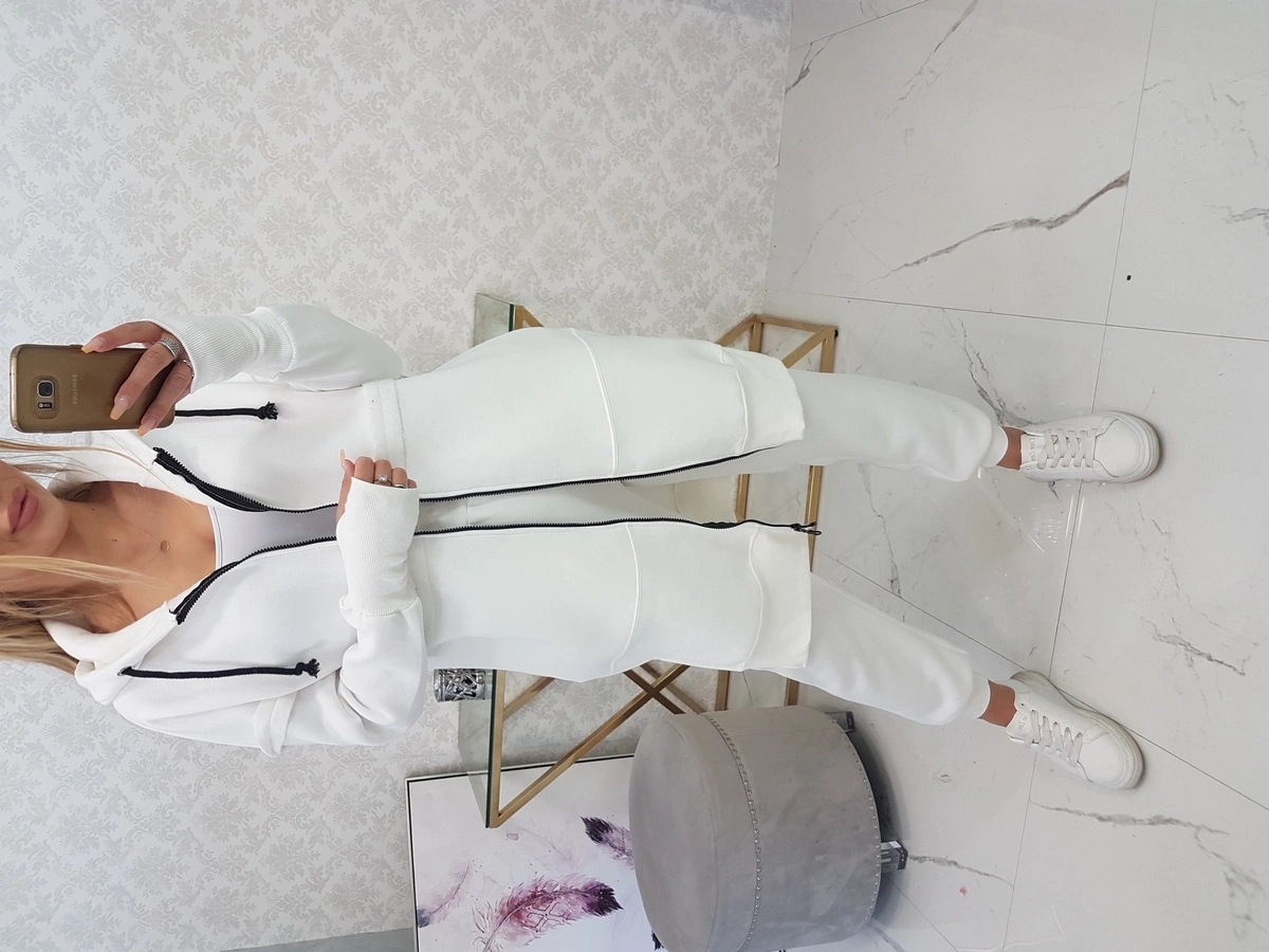Esitleme teile dressipluusi ja pükste komplekti. Dressipluusil on kapuuts ja taskud. Pusa kinnitub lukuga, allääres külgedel lõhikud. Pükstel on lai elastne vöökoht ja säärte allääres kott. Komplekt on valmistatud isoleeritud materjalist. Suurus on universaalne ja sobib S, M või L suuruses naistele.