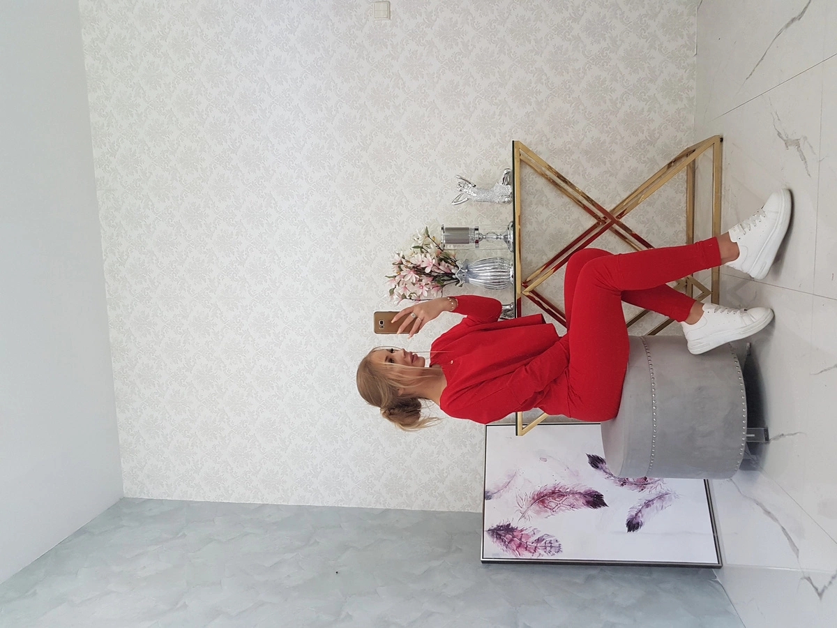 Esitleme teile dressipluusi ja pükste komplekti. Sile dressipluus ilma trükisteta. Taskutega püksid ja lips vöökohal. Komplekt on valmistatud kvaliteetsest materjalist. Suurus on universaalne ja sobib S, M või L suuruses naistele.