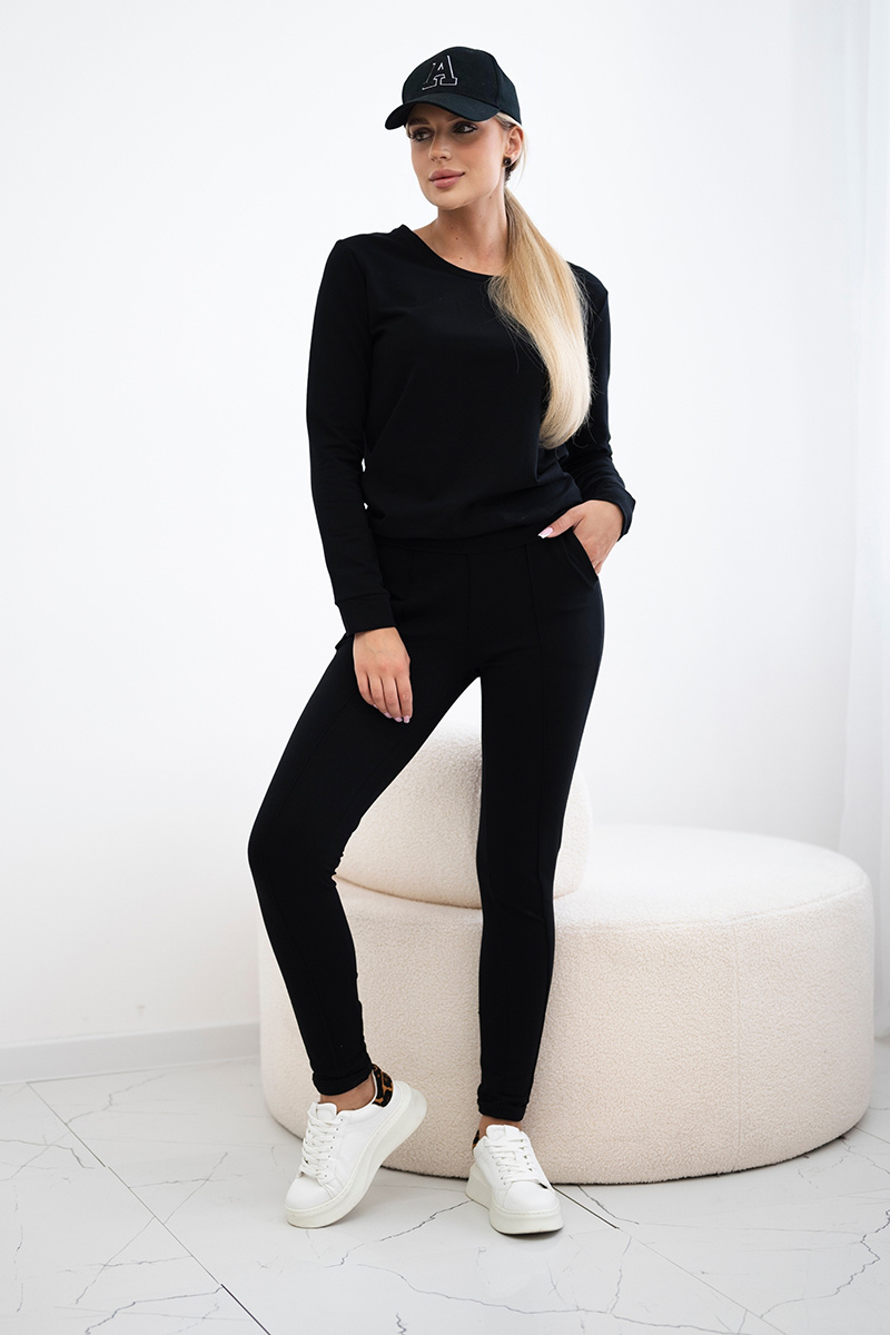 Esitleme teile dressipluusi ja pükste komplekti. Sile dressipluus ilma trükisteta. Taskutega püksid ja lips vöökohal. Komplekt on valmistatud kvaliteetsest materjalist. Suurus on universaalne ja sobib S, M või L suuruses naistele.