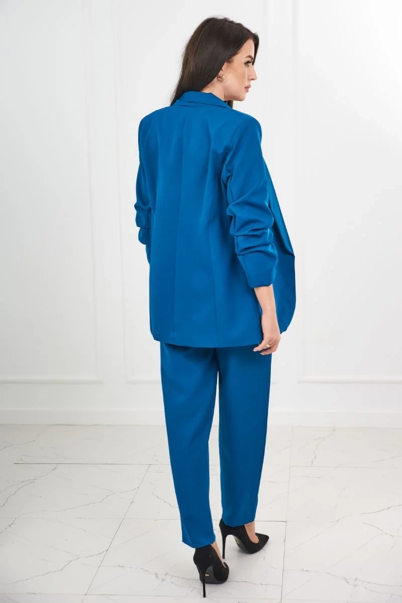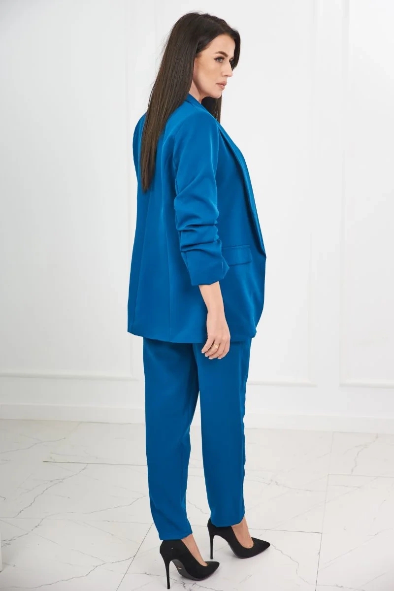 Esitleme teile elegantset jakkide ja pükste komplekti. ilma kinnituseta jope eesmiste revääridega. jopel on vooder. taskute ja vööga püksid. pükste taha on sisse õmmeldud kummipael. väga moodne ja stiilne komplekt. komplekt on valmistatud kvaliteetsest materjalist. suurus on universaalne ja sobib naistele suuruses s, m või l.