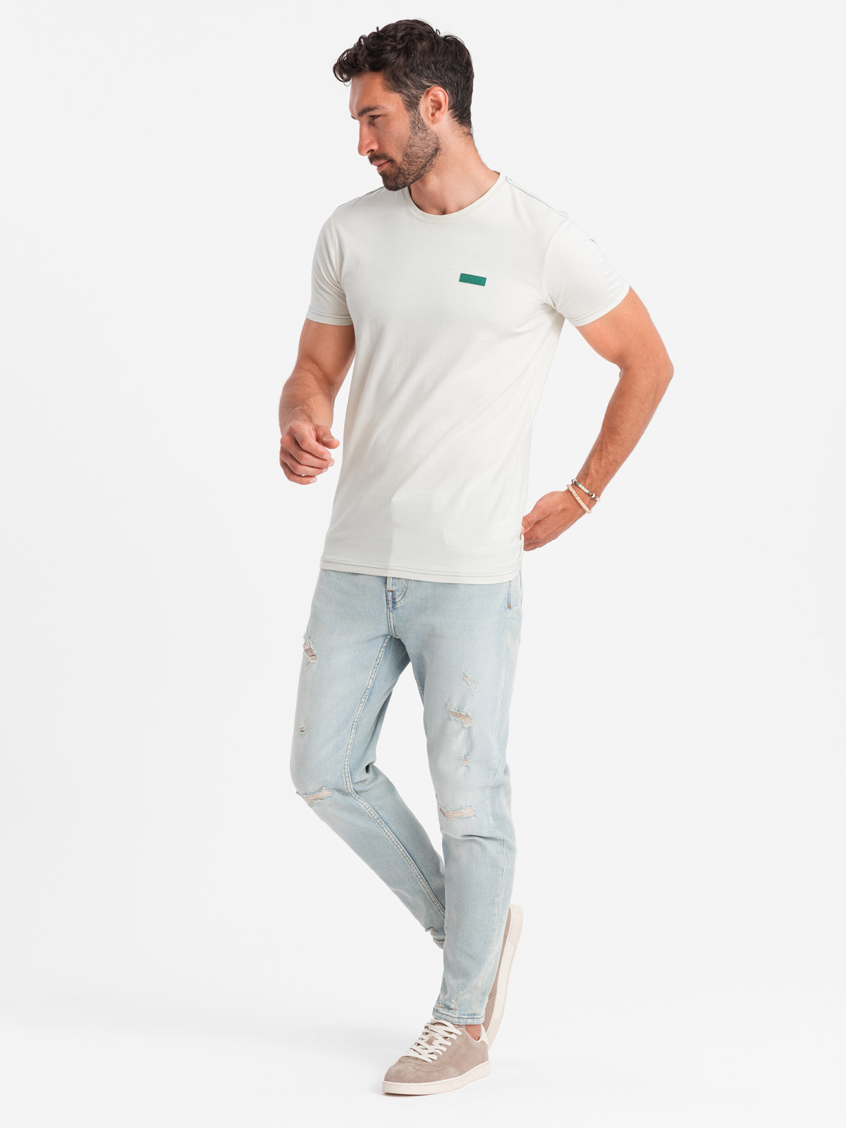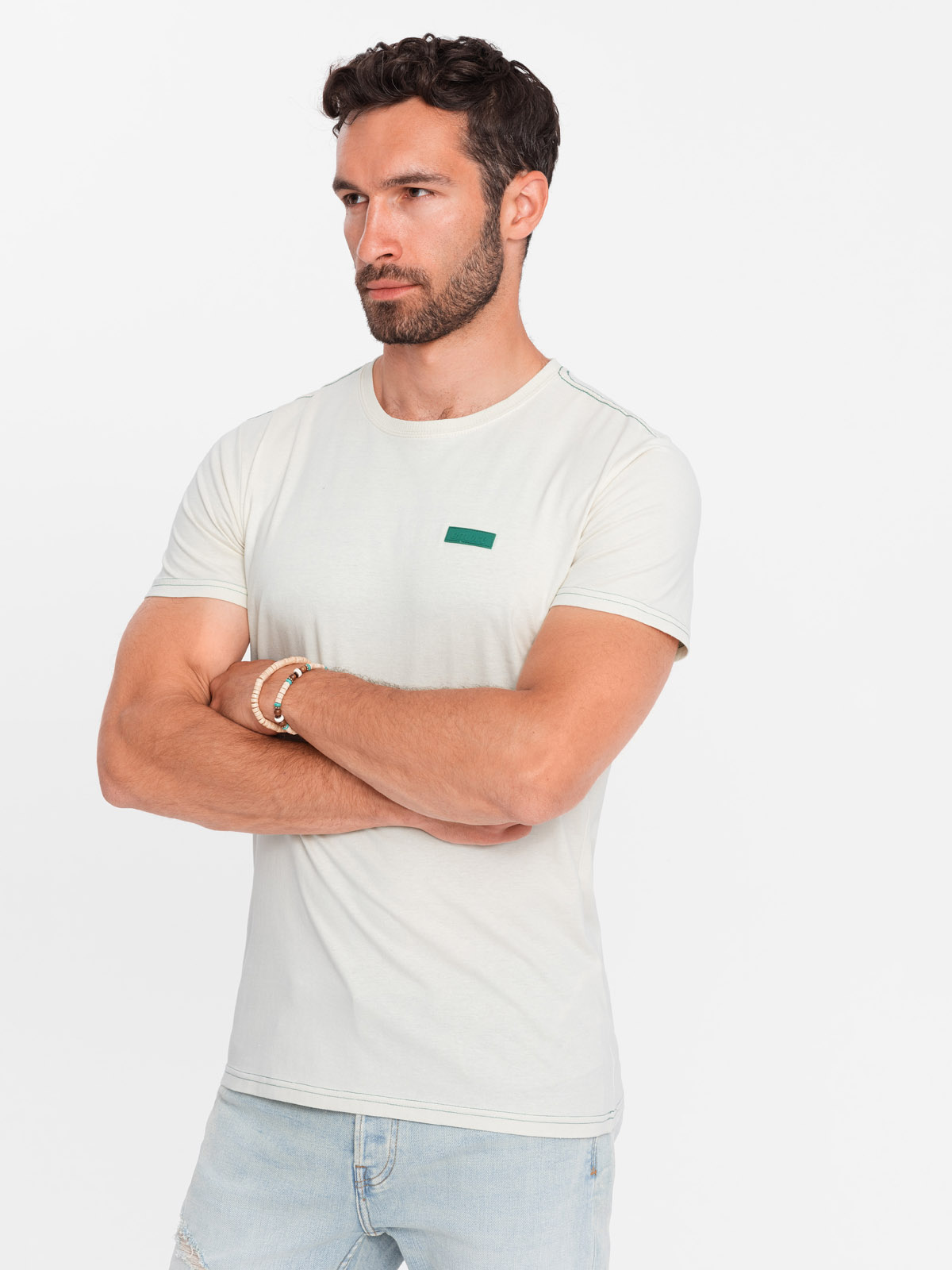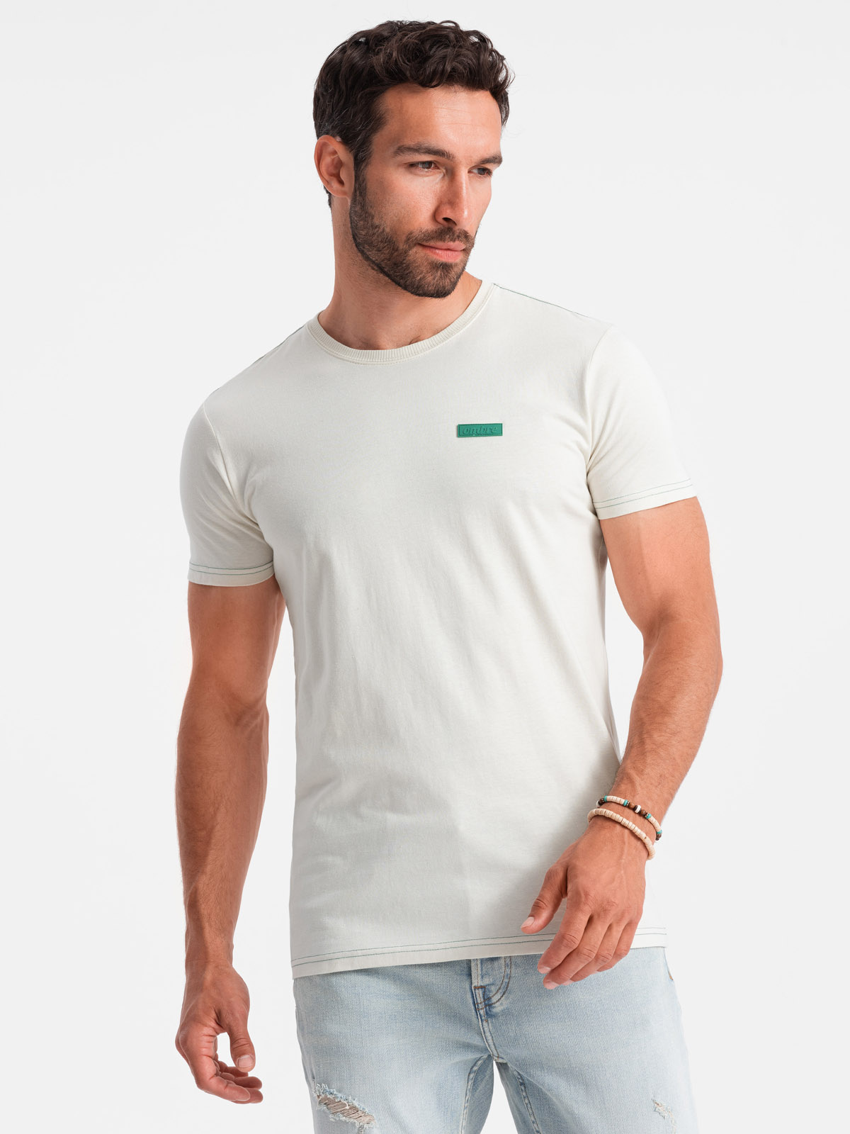 meeste kontrastse lõngaga puuvillane t-särk