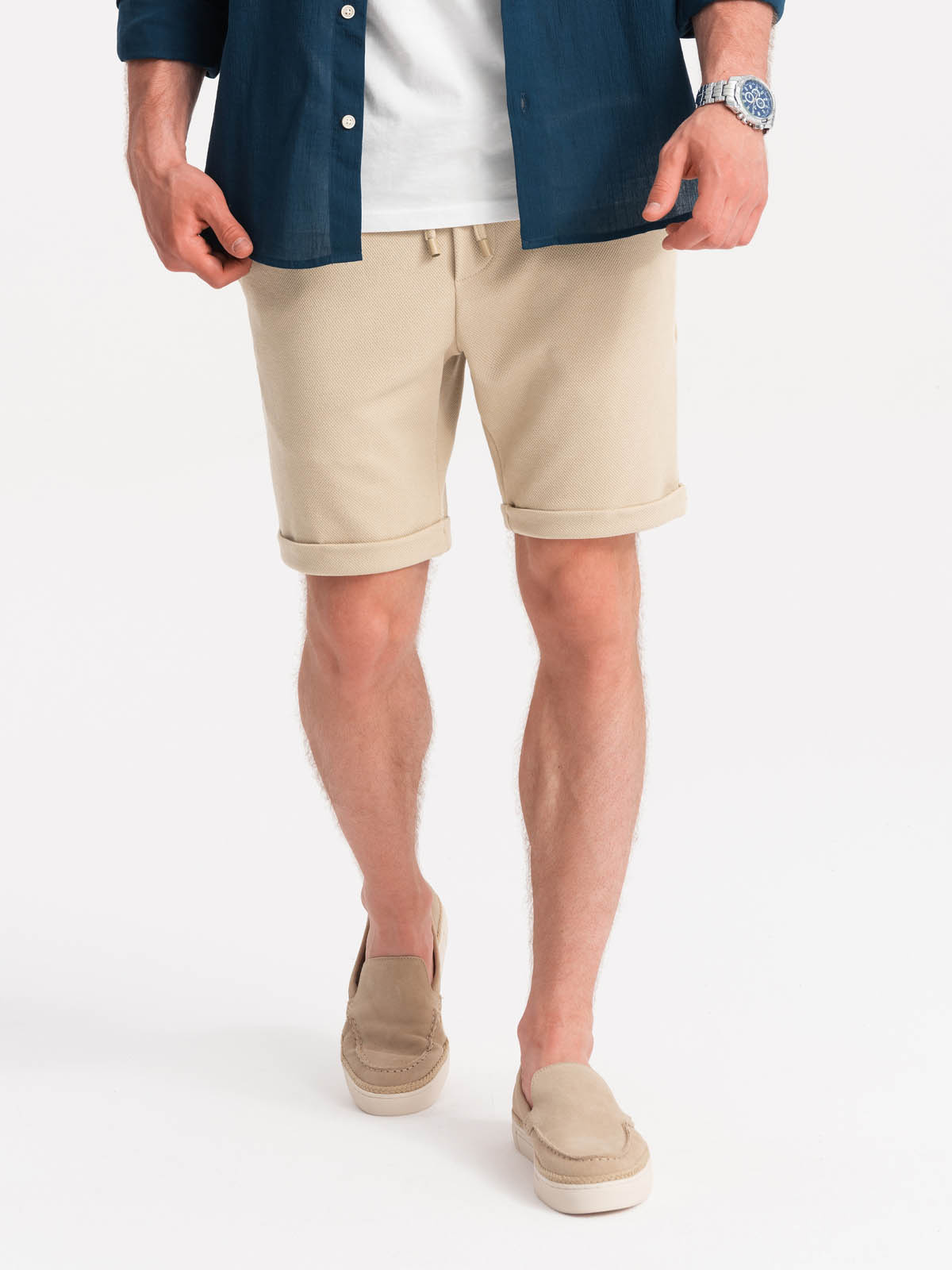meeste kootud lühikesed püksid elastse vöökohaga