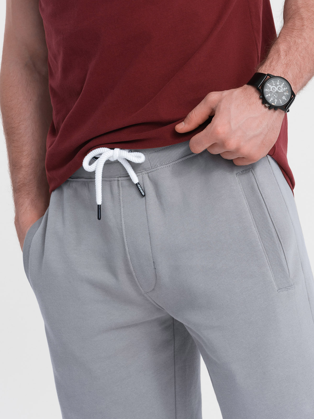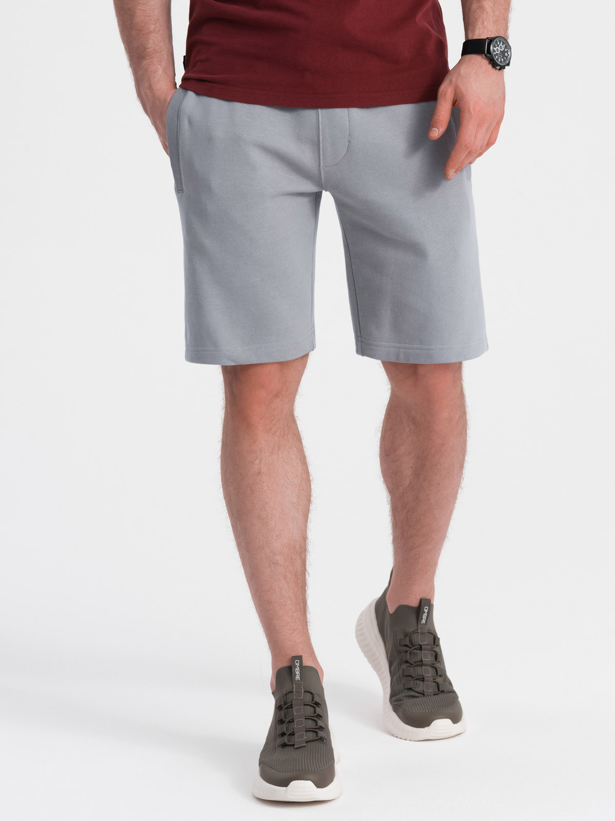 meeste kootud lühikesed püksid pingutusnööri ja taskutega