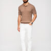 Meeste kitsa lõikega polosärk, mis on valmistatud trikotaažkangast. Sellel mudelil on klassikaline krae, lühikesed varrukad ning soonikkoes äär ja varrukaotsad. Kudumi rõhutatud soonikkoes struktuur toetab vormi stabiilsust, samas kui valdavalt viskooskiust koostis tagab pehmuse ja mugavuse. Nööpkinnitus võimaldab teil kaela all asendit reguleerida ja kergelt liibuv disain istub hästi figuurile.Koostis ja materjalid: 80% viskoos, 20% polüester trikotaažPeamised omadused: kitsa lõikega lõige, valdavalt viskooskiust trikotaaž, iseloomulik soonikkoes kanga struktuur, klassikaline krae, nööpidega kinnis, dekoltee ääres, soonikkoes all ja varrukatel, peen bränding nööpidel.See polosärk on hea valik meestele, kes otsivad alternatiivi klassikalisele T-särgile. See sobib hästi nii vabaaja kui ka poolformaalse stiiliga, kombineerides end teksade, chinode ja kergete kangast pükstega. Seda saab kanda üksi soojematel päevadel või kombineerida bleiseri või kerge jakiga, et luua ühtne välimus koosolekul, linnas või nädalavahetuse puhkusel.