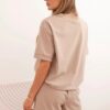 Vali mugavus ja stiil selle naiste puhkekomplektiga, mis koosneb lühikeste varrukatega pluusist ja lohvakatest lühikestest pükstest. See on ideaalne valik igapäevasteks väljasõitudeks, jalutuskäikudeks, aktiivseks puhkuseks või laisaks koduseks päevaks. Lihtne lõige moekas ja minimalistlikus stiilis toob esile silueti, tagades samal ajal täieliku liikumisvabaduse. Pehmest kangast ja lisatud elastaanist valmistatud komplekt kohandub hästi kehaga, ei piira liikumist ja pakub mugavust terveks päevaks. Pluusil on lõdvestunud lõige madalate õlgadega ning lühikestel pükstel on mugav elastne vöökoht, mis püsib kindlalt puusadel. Suurus on universaalne ja sobib naistele, kes kannavad suurust S, M või L.