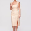 See elegantne maksipikk õhtukleit toob esile figuuri naiseliku ja rafineeritud lõikega, sobides ideaalselt pidulikeks sündmusteks ja erilisteks õhtuteks. Kehasse töödeldud ülaosa ja langev alaosa loovad graatsilise silueti, samas kui elastne kangas tagab mugavuse. Avatud selg ja esilõhik lisavad modernse ja pilkupüüdva detaili.
