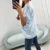 Esitleme teile puuvillast pluusi. Pluusil on kaelus. Üleskeeratud varrukatega pluus. Pluus on valmistatud kvaliteetsest materjalist. Väga moodne ja stiilne. Suurus on universaalne ja sobib daamidele, kes kannavad suurust S, M või L.