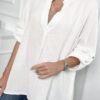 Esitleme teile puuvillast pluusi. Pluusil on kaelus. Üleskeeratud varrukatega pluus. Pluus on valmistatud kvaliteetsest materjalist. Väga moodne ja stiilne. Suurus on universaalne ja sobib daamidele, kes kannavad suurust S, M või L.