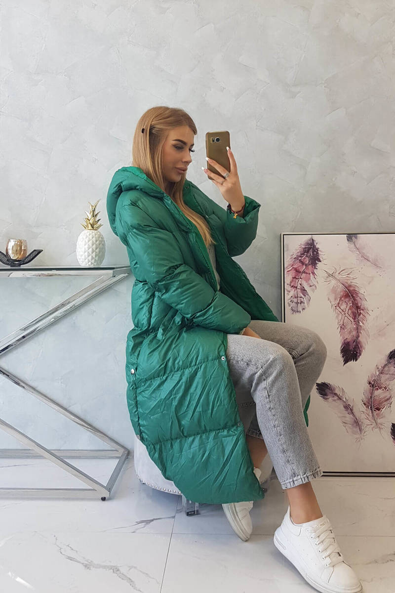 Esitleme teile pikka kapuutsiga talvejopet. Kapuuts ei ole eemaldatav. Kaks lõhikuga taskut ees. Külgedel dekoratiivsed trukid. Tepitud jakk trukkkinnitusega.