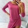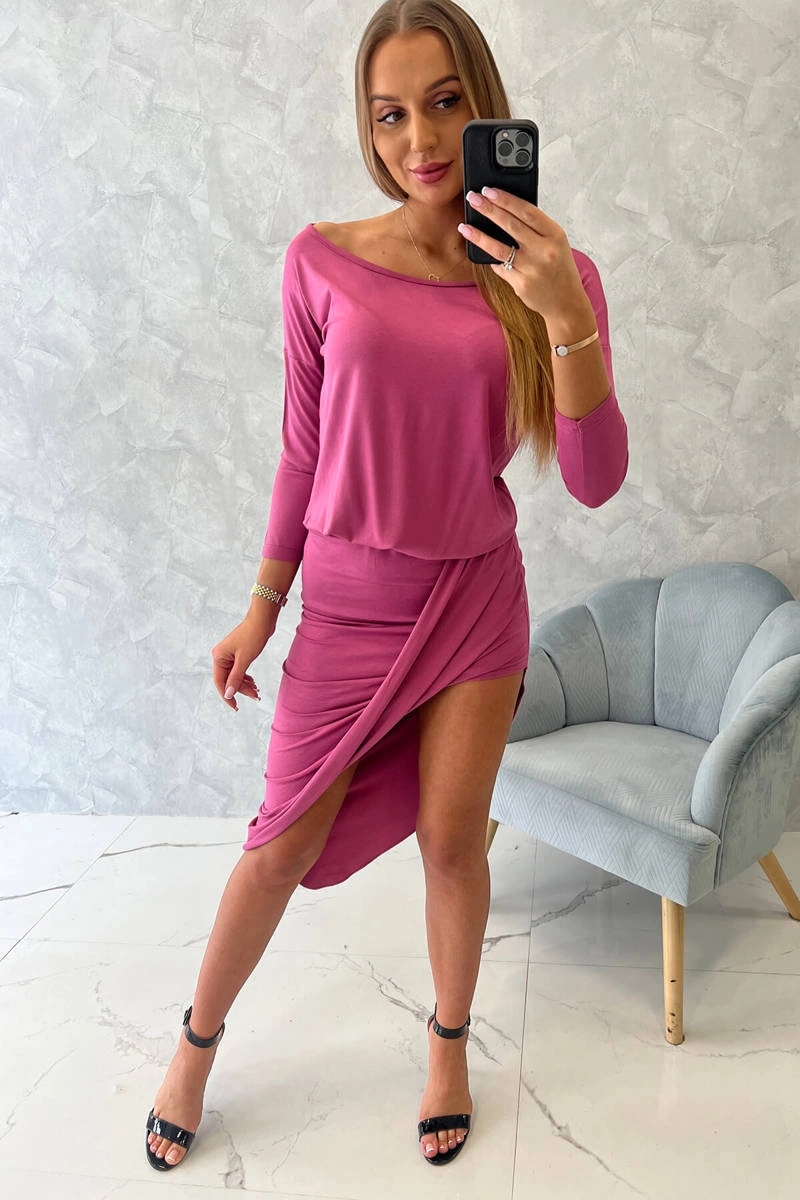 Esitleme teile stiilse asümmeetrilise 3/4 varrukatega kleidi. Kleit on valmistatud kvaliteetsest materjalist. Suurus on universaalne ja sobib daamidele, kes kannavad suurust S, M või L.