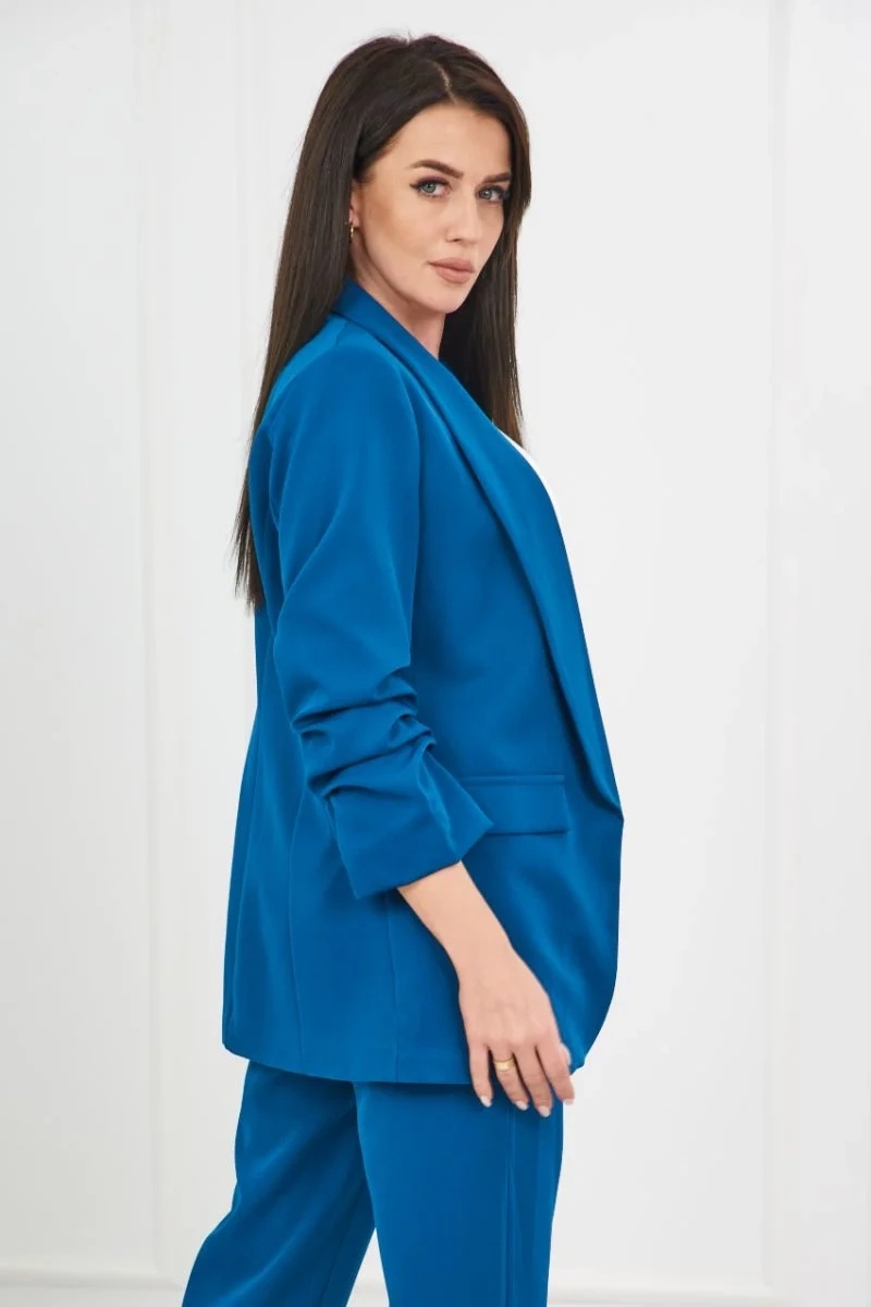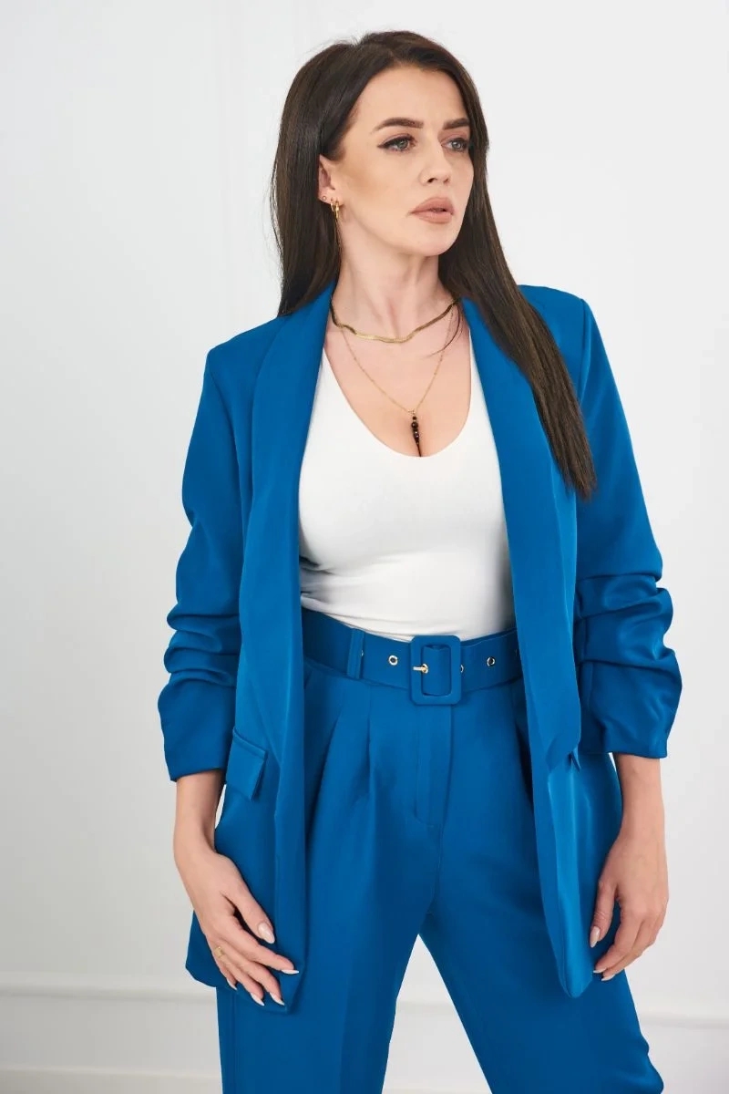 Esitleme teile elegantset jakkide ja pükste komplekti. ilma kinnituseta jope eesmiste revääridega. jopel on vooder. taskute ja vööga püksid. pükste taha on sisse õmmeldud kummipael. väga moodne ja stiilne komplekt. komplekt on valmistatud kvaliteetsest materjalist. suurus on universaalne ja sobib naistele suuruses s, m või l.