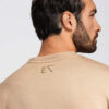 Meeste tavalise lõikega dressipluus reglanvarrukatega, valmistatud siledast puuvilla-polüester koest. Ümara kaelusega. Varrukatel, dekolteel ja alläärel on kontrastvärvi soonik. Rinnal on dekoratiivne tikand.