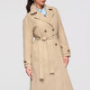 Põlvepikkune üleminekumantel klassikalise trenšlõikega. Mudelil on topeltreaga kinnitus, laiad reväärid, õla-epaulettid ja vöökoha rõhutamiseks seotav vöö. Valmistatud siledast, kompaktse struktuuriga ja kortsumiskindlast kangast. Nööpidega, küljetaskute ja reguleeritavate paikadega kätiste juures.
