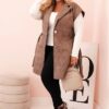 Stiilne tepitud naiste vest vööga on ettepanek naistele, kes hindavad elegantsi koos mugavusega. Mudelil on klassikaline krae ja dekoratiivne D-kujuline pross, mis rõhutab kaunilt siluetti tänu kaasasolevale reguleeritavale vööle vöökohal. Geomeetrilise mustriga tepitud kangas lisab modernset hõngu ning põlvepikkus pakub kaitset ja mugavust jahedamatel päevadel.