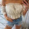 Esitleme teile moekat pluusi. Paljaste õlgadega pluus, hispaania keel. Moodsad volangid. Vöökohas ja kaeluses õmmeldud elastik. Pluus on valmistatud kvaliteetsest materjalist. Suurus on universaalne ja sobib daamidele, kes kannavad suurust S, M või L.