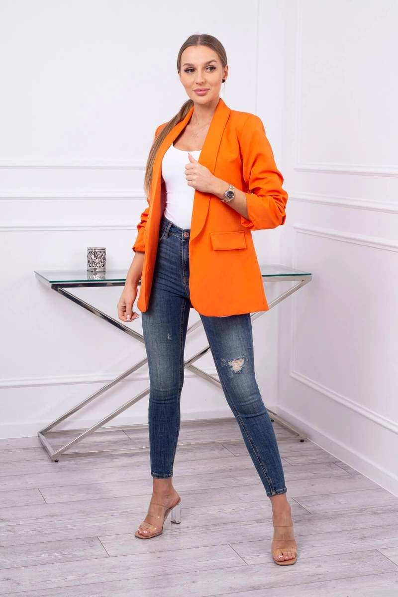 Esitleme teile elegantset jakki. Kinnituseta jope eesmiste revääridega. See mudel on suurepärane pakkumine erinevat tüüpi siluettidele, andes igale stiilile sundimatu elegantsi. See on iga garderoobi alus ja stiilielement eriülesannete jaoks – igal hooajal ja igaks elujuhtumiks. Jope on valmistatud kvaliteetsest materjalist. Jakil on vooder. Suurus on universaalne ja sobib naistele suuruses S, M ja L.